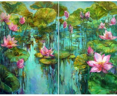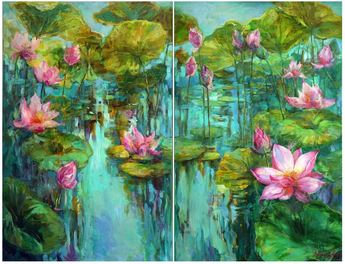 Lotus lake, dyptich, 80x125cm each, oil on canvas